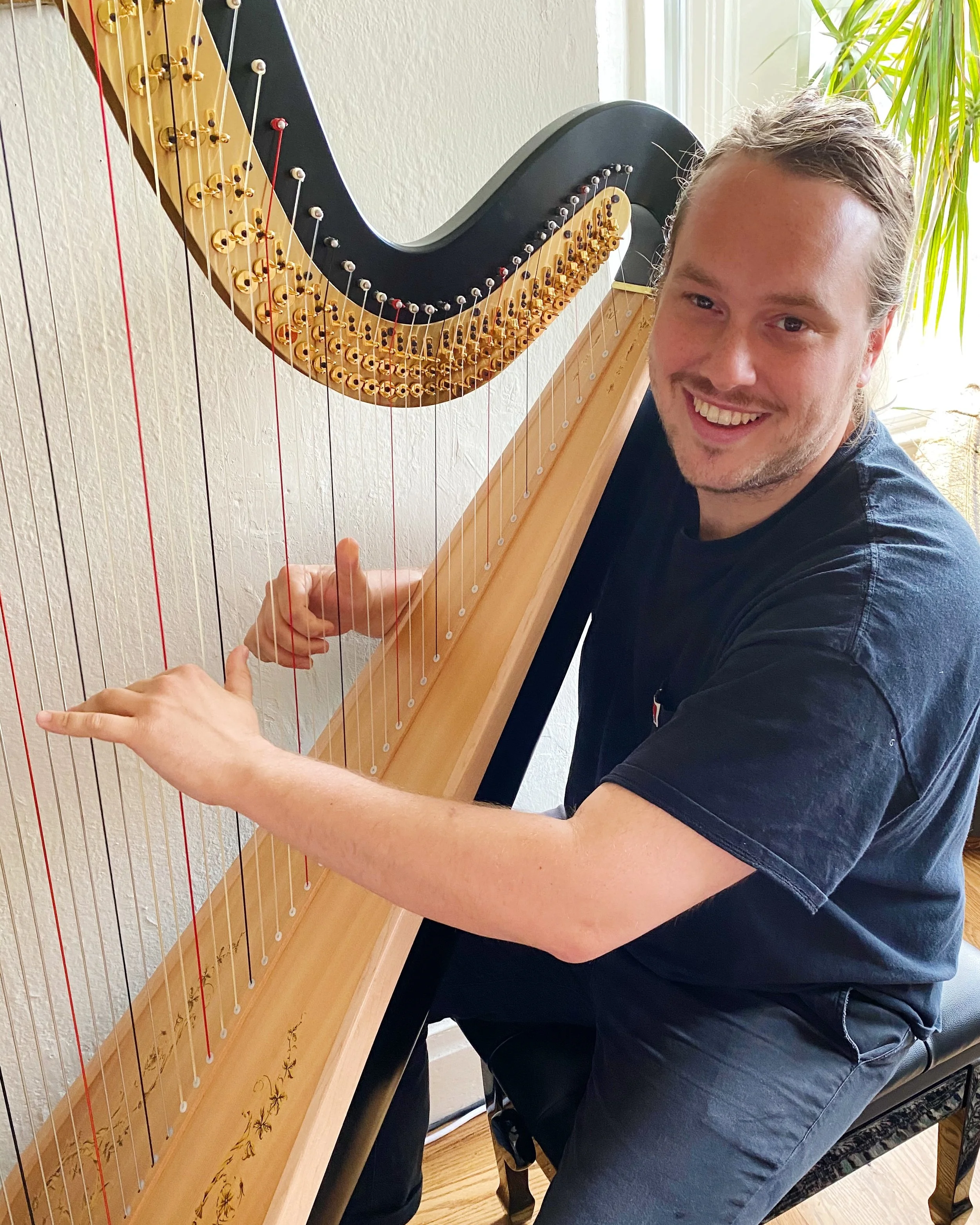 Ryan has been playing the harp for over eight years. In 2024, Ryan became a certified harp therapist through the Healing Harp Certification program at California Pacific Medical Center (CPMC) / Sutter Health. This program is accredited by the National Standard Board for Therapeutic Musicians (NSBTM). His work at CPMC involved 45 hours of one on one patient playing time, during which he engaged with more than 100 patients from different backgrounds and with varying needs. He has studied harp with Laura Simpson, Natalie Cox, and Portia Diwa. Outside of the harp, Ryan holds a PhD from the University of California, San Francisco (UCSF) and works professionally as a molecular biologist.